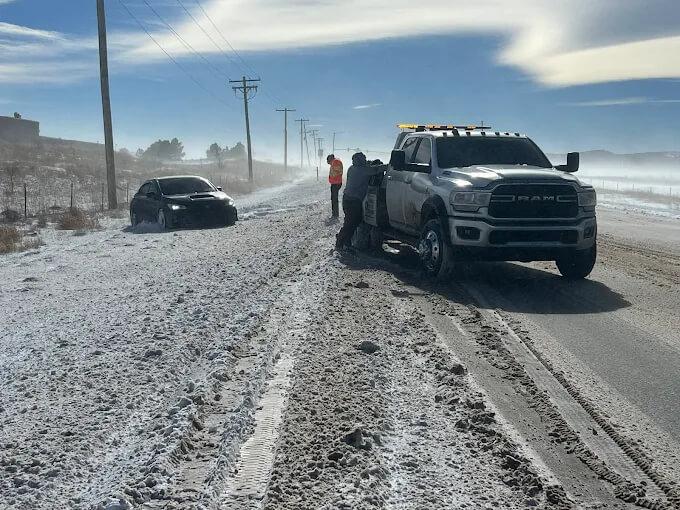 Operators hold Colorado Level I towing certification and complete annual WreckMaster refreshers. Trucks idle down automatically to reduce emissions during service, and we recycle drained batteries and scrap tires at certified facilities. Top-notch towing and car recovery at your service!